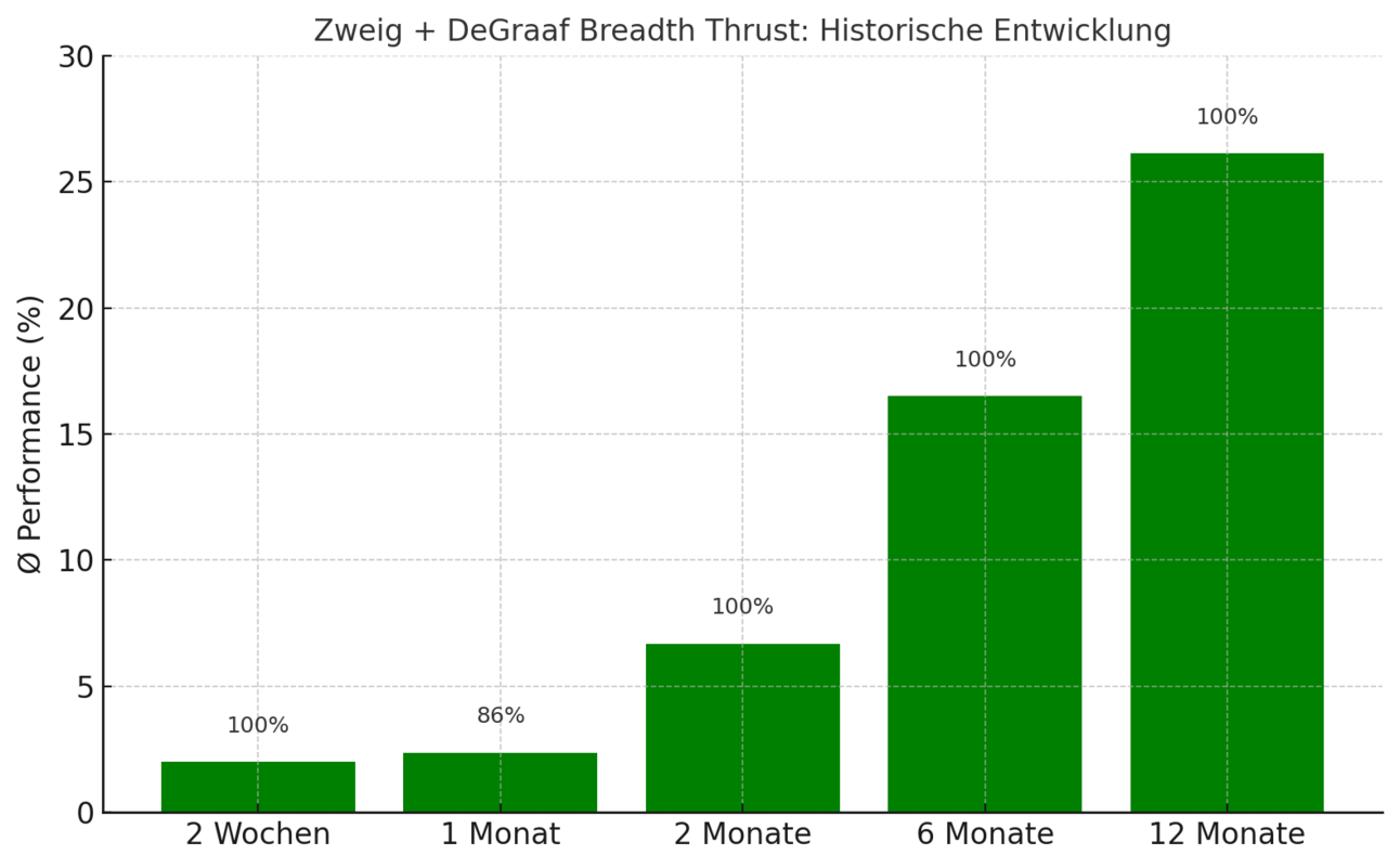 Zusammenfassung: Wenn Zweig und DeGraaf gleichzeitig feuern, war das in der Vergangenheit oft der Startschuss für eine längerfristige Aufwärtsbewegung – mit bemerkenswert hoher Trefferquote.