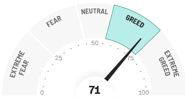 Der Fear & Greed Index steht aktuell bei 71 – und signalisiert damit klar: Gier.