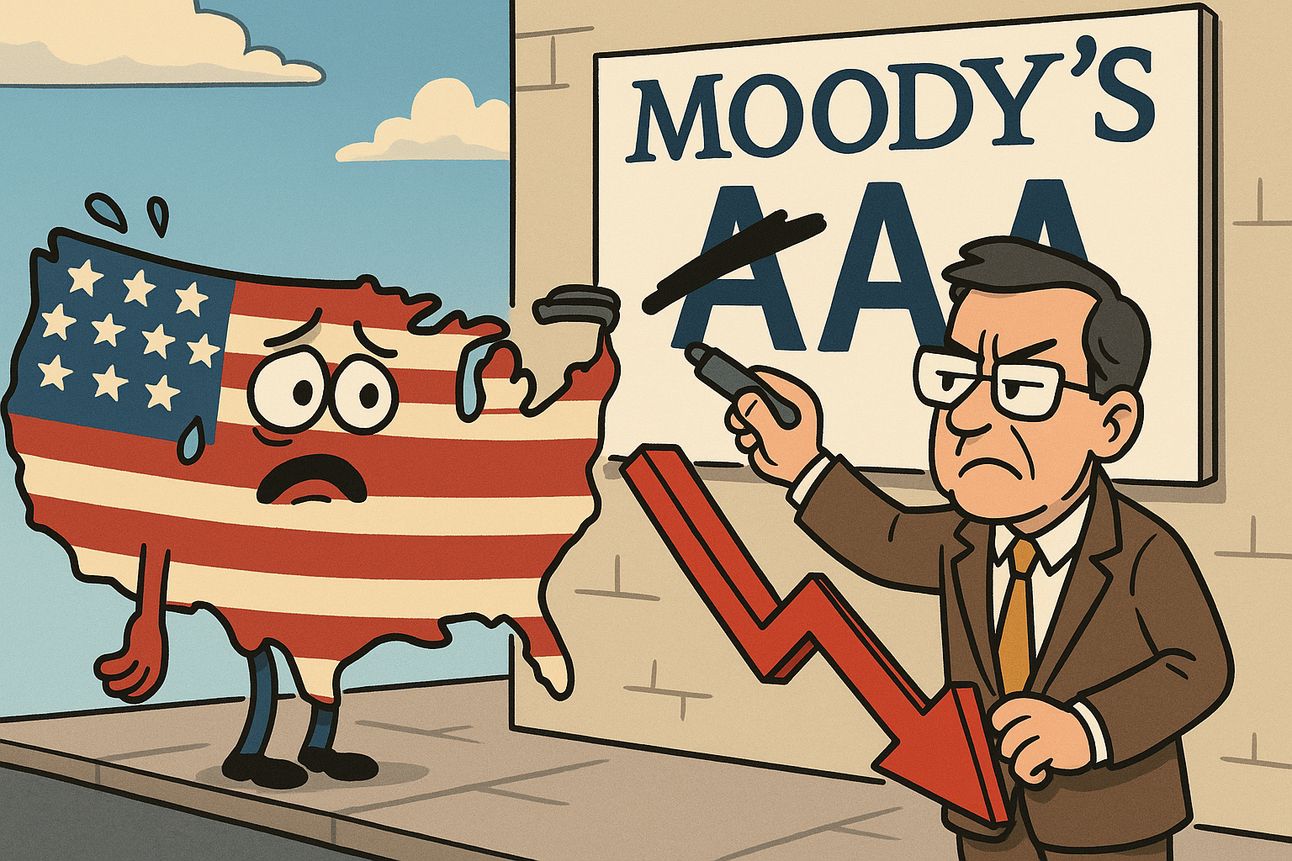 Am Freitag nach Börsenschluss hat Moody’s das US-Staatsrating von Aaa auf Aa1 herabgestuft – vergleichbar mit einem Notenrutsch von „1+“ auf „1“: ärgerlich, aber noch lange keine Katastrophe. S&P hatte das „perfekte“ Triple-A bereits 2011 gekippt, Fitch folgte 2023. Moody’s reiht sich damit als dritte große Ratingagentur in eine schon länger bestehende Kritik an der US-Schuldenpolitik ein.
